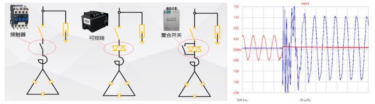 이전에는 평행 커패시터의 스위칭이 2 차 수준 규모의 응답 시간을 가진 접촉자를 통해 달성되었기 때문에 치명적인 단점은 스위칭 중에 큰 침입 전류였습니다.심각한 경우, 그것은 보상 커패시터의 정격 전류의 50 - 100 배에 도달 할 수 있으며, 상당한 아크 빛을 초래하고 커패시터와 접촉자에 손상을 일으킬 수 있습니다.현장 부하의 실제 작동을 바탕으로, 동기 스위치, 하이브리드 스위치 및 사이리스터 스위치와 같은 콘택터 대안이 점차 시장에 등장했습니다.이러한 대안은 제로 전압에서의 스위칭 및 제로 전류에서의 중단에서 크게 개선되어 스위칭 유입 전류로 인한 장비 손상을 크게 줄일 수 있습니다.