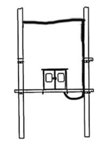 장치는 ( 그림 2 ) 와 같이 두 개의 와이어 극 사이에 실외에 설치됩니다.